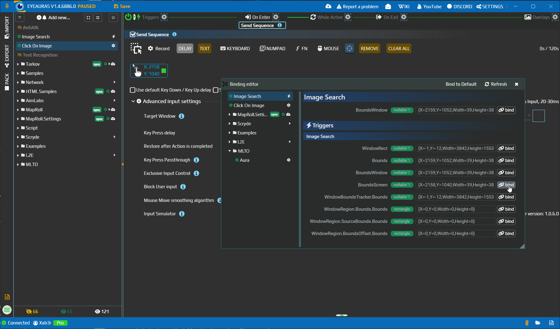 Привязки (Bindings) - это продвинутая функция в EyeAuras, предназначенная для установления связей между различными свойствами триггеров, аур и действий.