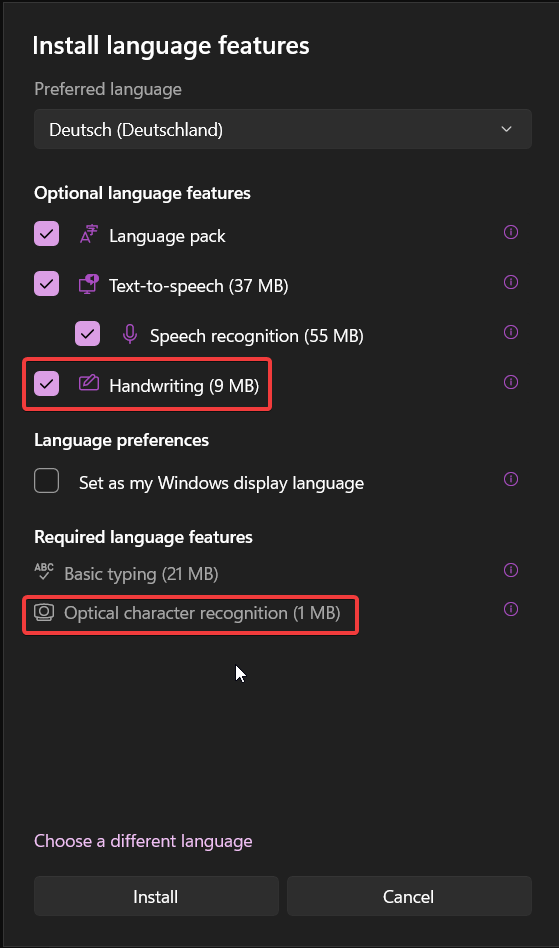 - Windows скачает и установит необходимые файлы для OCR на выбранном языке. Это может занять некоторое время в зависимости от скорости интернета.